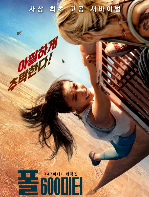 영화 "폴: 600미터"는 높이에 대한 공포감과 아찔함을 잘 보여주는 재미있는 영화라고 생각합니다. 남편을 사고로 잃고 술에 취해 살던 베키는 실패감을 극복하기 위해 허허벌판에 있는 'B67'이라는 고층 타워를 올라갑니다. 특히 이 고층 타워에는 아무도 오지 않는 장소이고 휴대폰도 터지지 않는 높이라는 설정이 매력적입니다. 등반하는 모습도 아찔하지만 다시 내려가는 시점에 맨 꼭대기의 사다리가 부서질 때는 관객들에게 좌절감과 공포감을 동시에 제공합니다. 호시탐탐 캐릭터들을 먹잇감으로 노리는 독수리, 물과 음식도 없는 좁은 장소, 휴대폰도 터지지 않는 아찔한 높이가 관객들을 몰입하게 만듭니다. 단순한 내용이지만 긴장감과 몰입도가 대단한 영화라고 생각됩니다. 무엇보다 고소공포증이 있는 사람들이라면 이처럼 무서운 영화는 없을 것 같습니다. 영화는 시작부터 끝까지 '스릴'에 집중합니다. 관객은 마치 영화 속의 주인공들이 처한 상황에 놓인 것 같은 기분이 듭니다. "폴: 600미터"는 시각적인 자극도 물론 훌륭했지만, 청각적인 부분도 잘 활용했습니다. 나사가 풀리는 소리, 긴장감을 높이는 바람 소리 등을 효과적으로 사용했습니다. 중간에 캐릭터의 시선이 아래를 향할 때 카메라의 시선도 같이 아래로 향하면서 실제 고소공포증을 느낄 수 있는 장면도 좋았습니다. 물론 체험적인 부분뿐만이 아니라 영화는 인간의 무모한 도전과 동시에 극한 상황에서 나오는 인간의 생존 본능이라는 주제도 탐구합니다. 남편을 잃고 폐인처럼 살고 있던 베키는 어느새 생존에 집착합니다. 영화 "폴: 600미터"는 단순히 시각적인 체험을 제공하는 것뿐만이 아니라 극단적인 환경에서 인간의 생존 본능과 삶의 중요성에 대해 다시 한번 생각하게 만듭니다. 예산이 적은 영화임에도 불구하고 아찔함을 보여주는 영화라서 서바이벌 영화를 좋아하시는 분들에게 추천합니다.