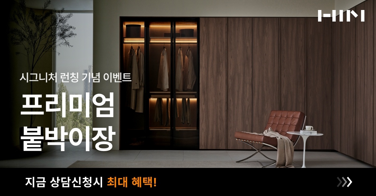 이번에 프리미엄 붙박이장 시그니처 시스템을 런칭한 기념으로 단순히가격적인 혜택만 있는 것이 아니라, 새로운 제품의 질과 설치 서비스에서도 기대 이상의 가치를 제공합니다.